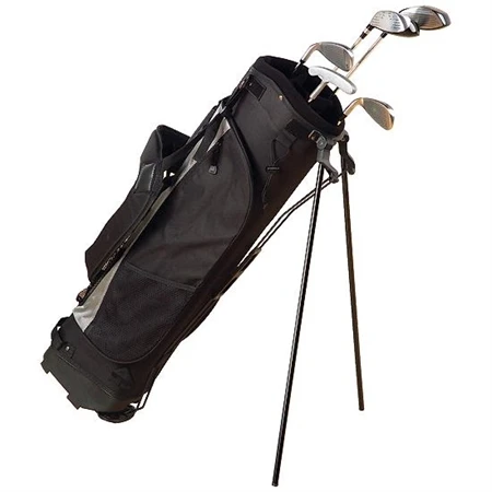 Individual clubs and sets have chrome-finished step-down shafts with all-weather rubber grips. Has four irons (3, 5, 7, and 9 ), two metal woods (1 and 3), one putter, and bag. For right-handed players.