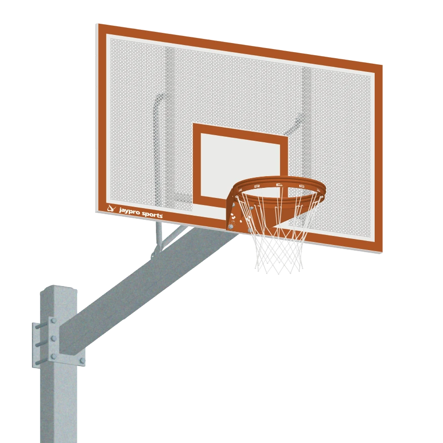 Heavy-duty fixed height system with backboard and goal mounted directly to extension arm for exceptional strength. Reinforced with rear support braces!