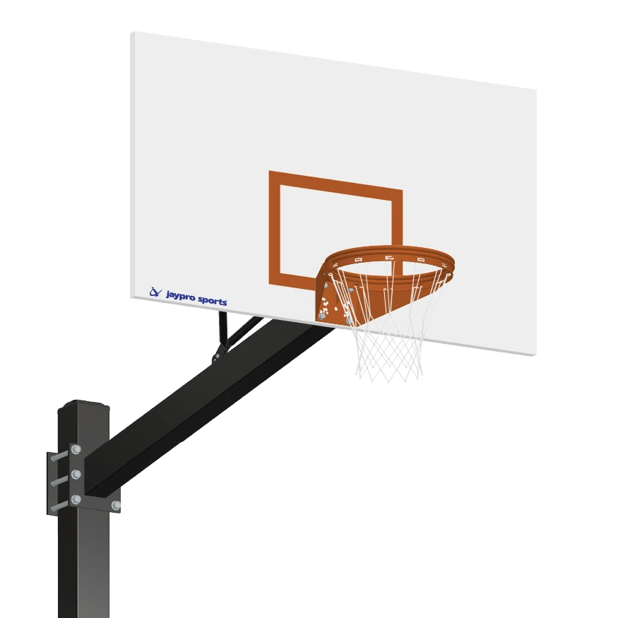 Heavy-duty fixed height system with backboard and goal mounted directly to extension arm for exceptional strength. Reinforced with rear support braces!