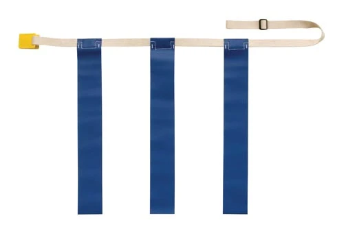 3 flags permanently sewn onto the web belt. Entire belt comes off – no parts to lose!. Belt is washable. Vinyl coated polyester will not tear. Polyethylene clip will not break. Flags sewn on with polyester thread. Adjustable sides for sizing. Available in 4 sizes and 3 colors.
